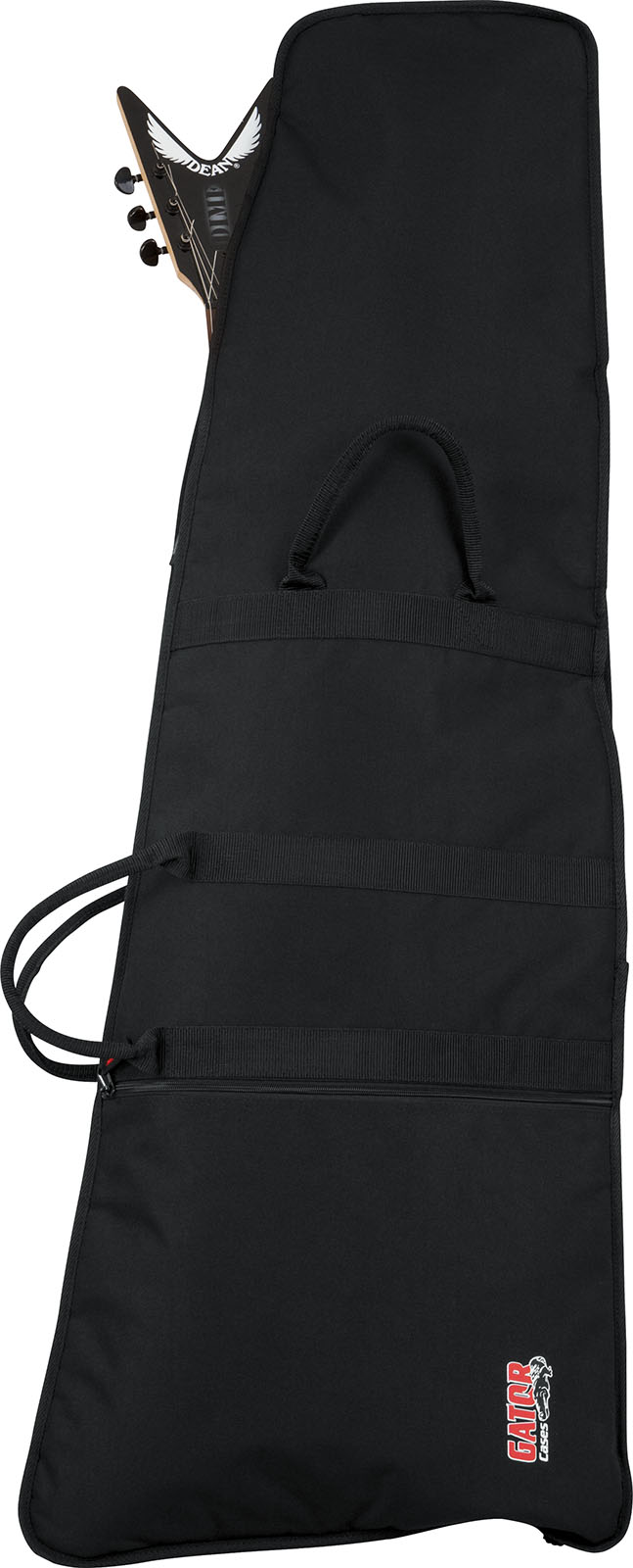 Cette housse de guitare Gator est conçue pour le transport des guitares électriques aux formes radicales. Son extérieur en nylon 600 deniers, résistant et déperlant, protège efficacement l’instrument contre l’usure et l’humidité.