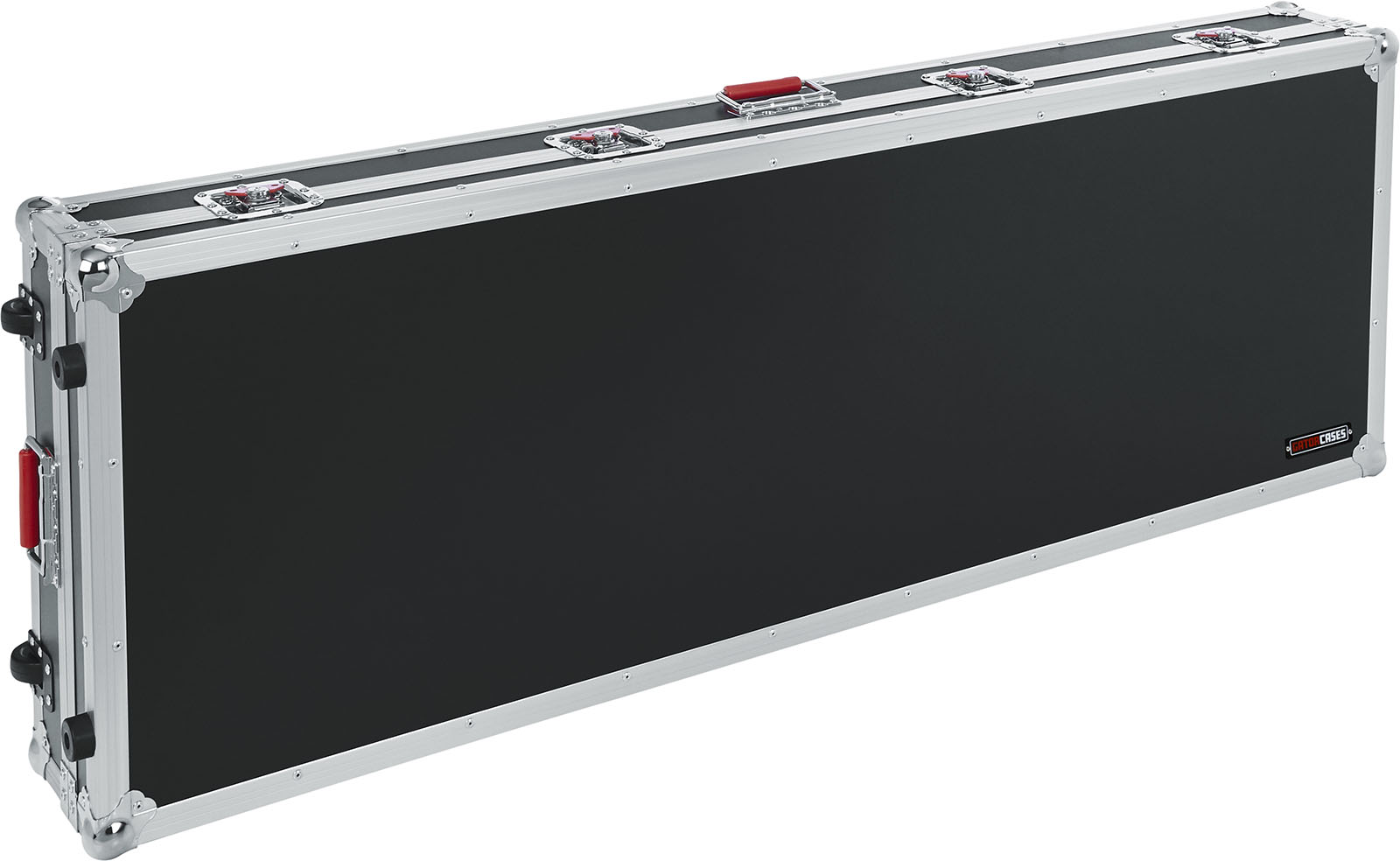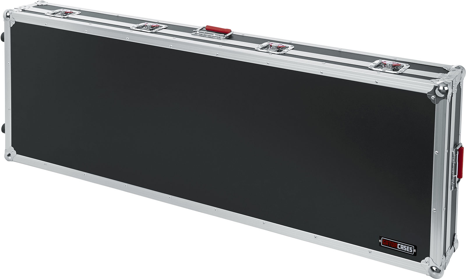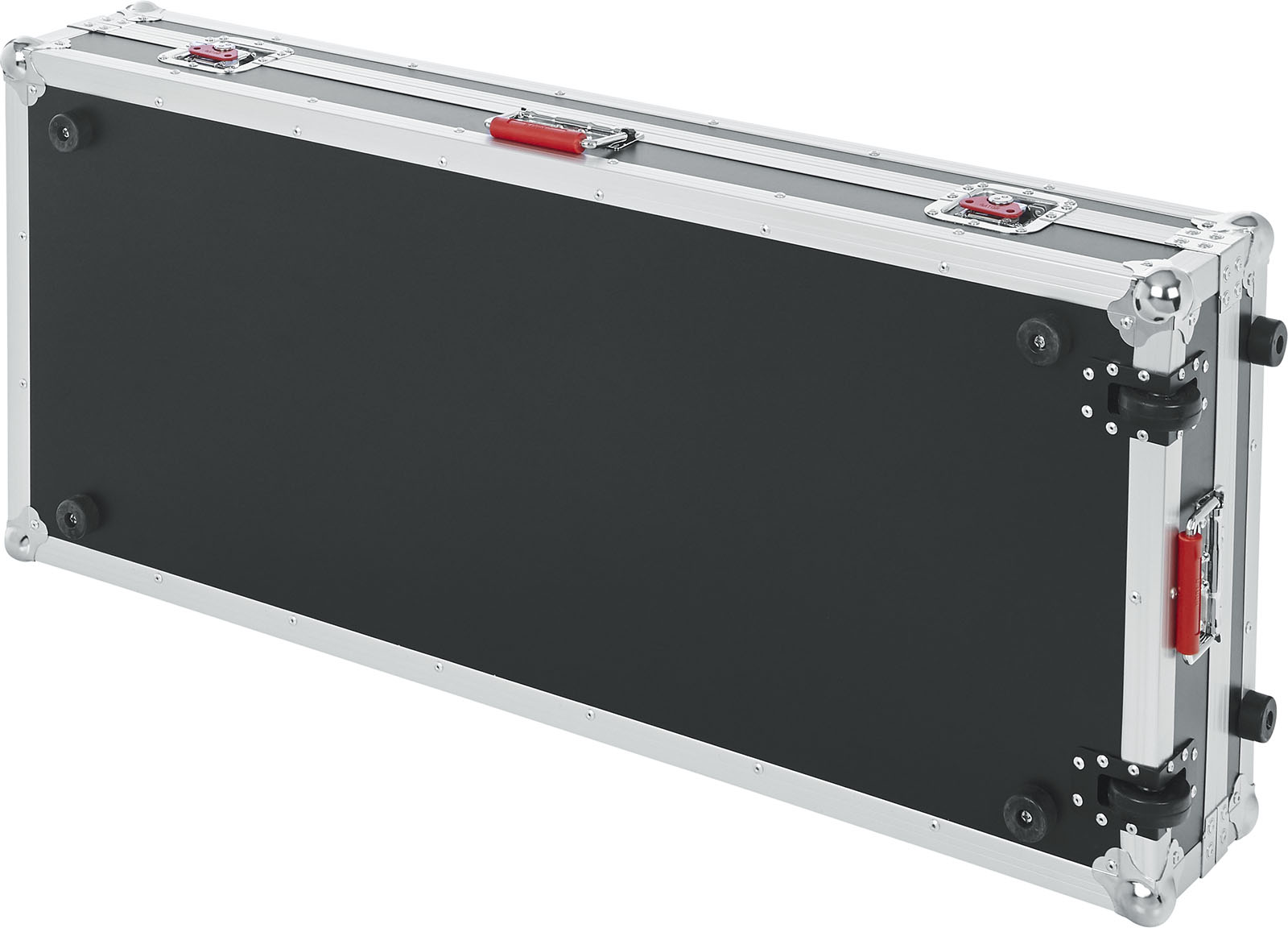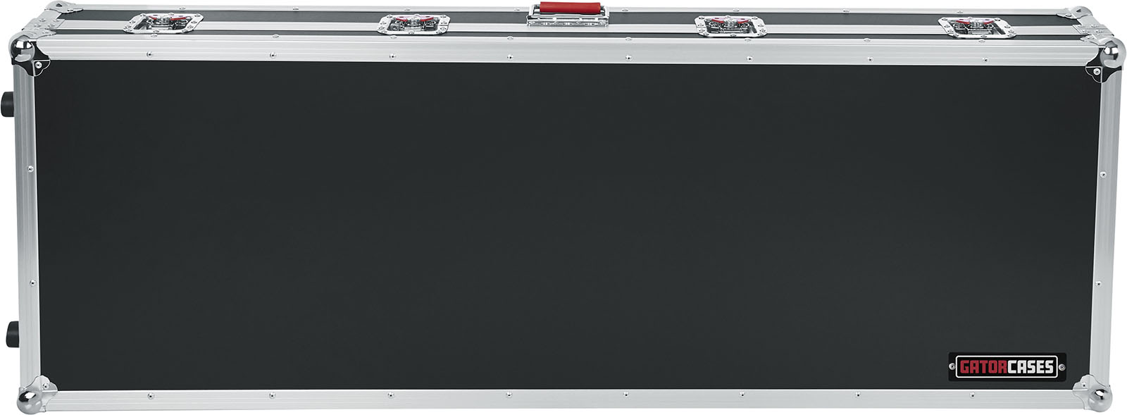 Flight case ATA Gator en bois pour claviers 88 notes, conçu pour un usage professionnel intensif. Sa structure en contreplaqué renforcé avec revêtement laminé et ses profilés aluminium à rainure et languette assurent une protection maximale lors du transport.
