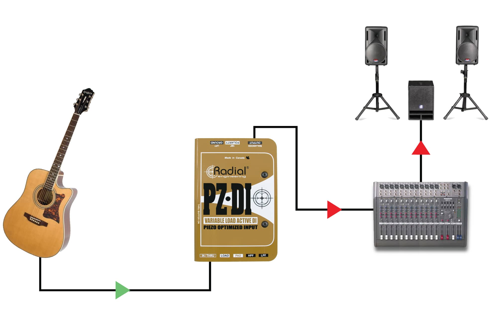 La Radial PZ-DI est une boîte de direct unique qui est conçue spécifiquement pour les instruments acoustiques et orchestraux.Contrairement à la plupart des boîtes de direct, la PZ-DI vous permet de faire correspondre l'impédance d'entrée de la source afin d'optimiser la réponse en fréquence, la dynamique et la sensation pour un résultat plus musical.L'interrupteur de réglage d'impédance 3 positions est le point central de la PZ-DI :La position 1 meg ohm fournit l'impédance classique disponible sur la plupart des boîtes de direct actives.Le réglage à 220k ohms génère un réchauffement du signal en vue de convenir à un capteur magnétique, un peu comme si l'instrument était connecté à un ampli à lampes.La position 10 meg ohms est utilisée pour compenser le son criard qui émane généralement des instruments équipés de piézo.De plus, un filtre passe-haut variable vous permet de 'sculpter' l'instrument en atténuant délicatement les basses fréquences, ce qui élimine toute résonance indésirable. Vous pouvez, par exemple, conserver le bas du spectre sur un violoncelle, mais faire agir ce filtre pour mieux convenir à un violon. Sur les instruments actifs, tels que des guitares acoustiques dotées d'un préampliembarqué, vous pouvez engager ce filtre pour obtenir un son plus doux et naturel.Afin d'optimiser la gestion des signaux et réduire la distorsion, la PZ-DI intègre une alimentation en courant continu innovante qui convertit l'alimentation fantôme en vue d'offrir davantage de 'headroom'. Ce qui donne une plage dynamique confortable pour les instruments acoustiques. Pour les sources à fort niveau, comme les basses actives ou les claviers numériques, il suffit d'activer le pad -15dB. La Radial PZ-DI dispose également d'un inverseur de polarité à 180° et d'un ground lift.