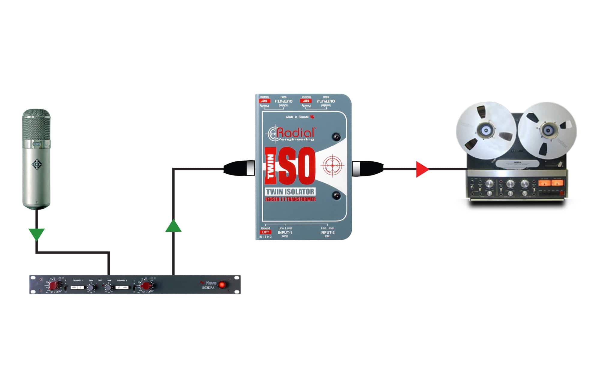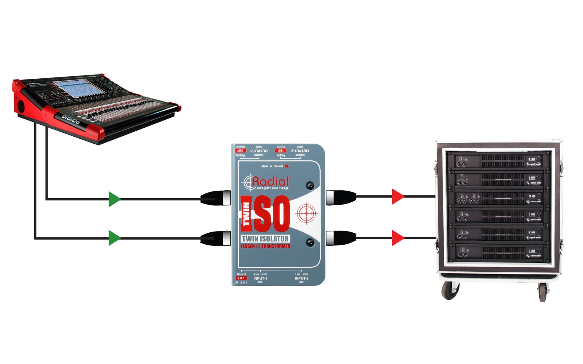 Le Radial Twin-Iso est un isolateur passif de ligne +4dB stéréo spécialement développé pour les systèmes de diffusion sonore professionnels afin d'éliminer les hums et autres buzzs engendrés par les boucles de masses causés par l'interfaçage de 2 équipements entre eux (2 consoles de mixage par exemple).Au coeur du Twin-Iso se trouvent 2 transformateurs Jensen reconnus mondialement pour leur qualité sonore. Ceux-ci assurent le meilleur transfert de signal possible sans aucune distorsion du signal.Toutes lesconnexions sont faites sur XLR au standard AES. Un switch de polarité estdisponible sur chaque canal pour plus de flexibilité.Le Twin-Iso peut être monté en rack grâce au J-Rak (jusqu'à 8 par rack) ou installé discrètement sous une table de conférence grâce au J-Clamp. Le Twin-Iso de Radial est un outil simple mais ô combien efficace pour le professionnel du son et le concepteur de système son.