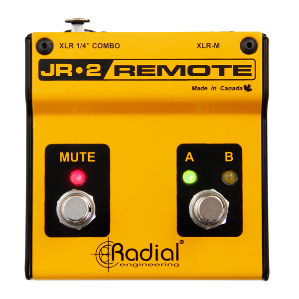 Le Radial JR2 est un footswitch équipé de deux commutateurs MUTE et AB select. Bien que désignées ainsi, les fonctionnalités réelles des pédales dépendent du produit Radial spécifique auquel elles sont connectées. Le JR2 se connecte à l'appareil à l'aide d'un câble audio symétrique standard avec un choix de connecteurs TRS ou XLR ¼”. Le JR2 est unique en ce sens qu'il tire son alimentation de l'appareil contrôlé, ce qui allume les voyants LED intégrés pour indiquer l'état de la télécommande. Les deux commutateurs sont de type à verrouillage.