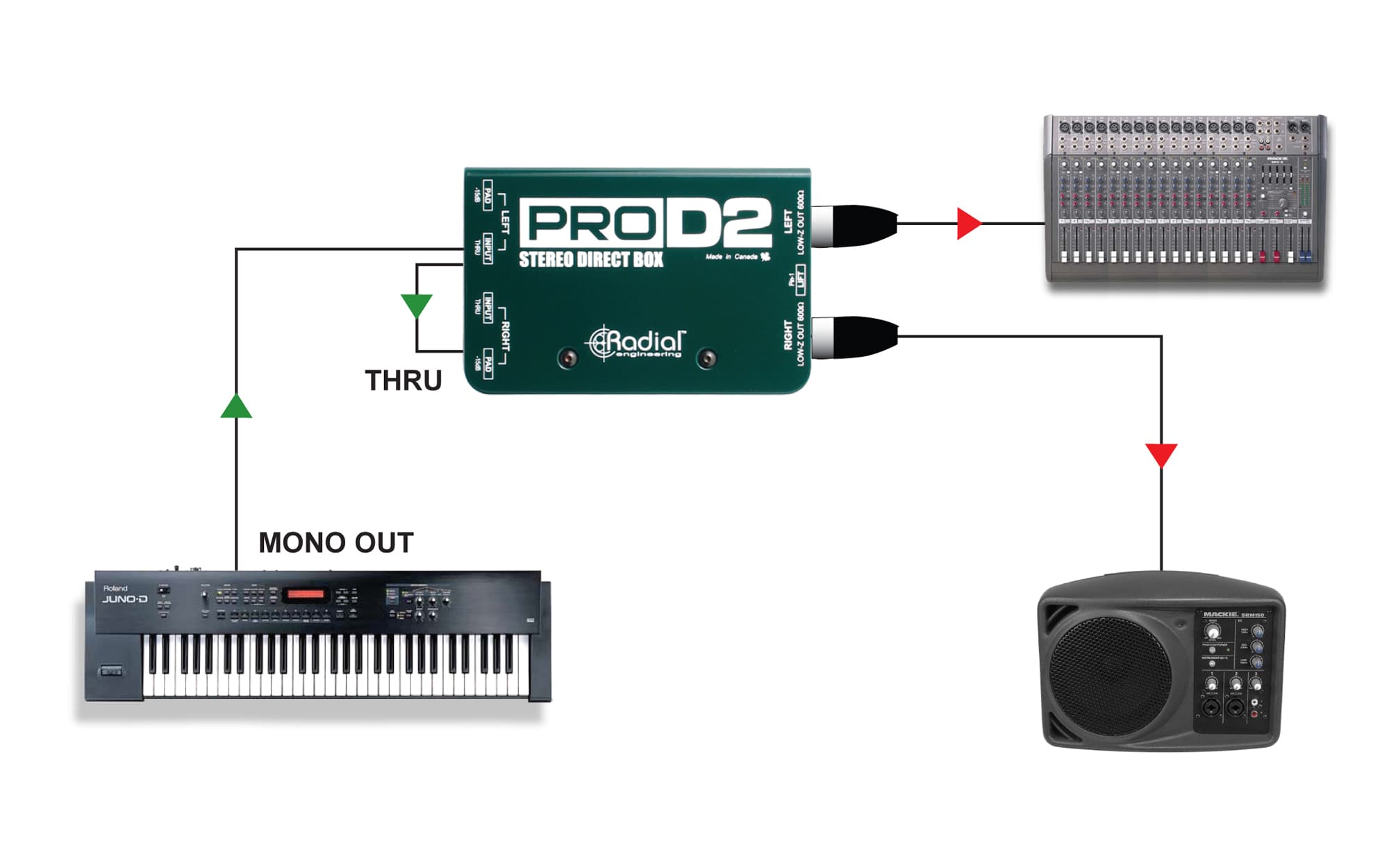 La Pro D2 est tout simplement la combinaison de 2 Pro DI dans 1 seul boitier compact.Suivant les pas de la JDI, la Pro D2 est une DI passive ultra compacte qui a été spécialement conçue pour les petites structures afin qu'elles puissent bénéficier de la qualité d'une DI Radial à un prix un peu plus abordable.La Pro D2 est équipée d'un transformateur custom capable de supporter de forts niveaux sans saturer. Ce transformateur haute performance a une bande passante exceptionnellement linéaire de 20Hz à18kHz, elle est donc idéale pour les instruments de musique et les équipements audio. La ProDI est équipée d'un switch d'atténuation de 15dB ainsi que d'un switch de coupure de masse pour résoudre les problèmes de boucles de masse.