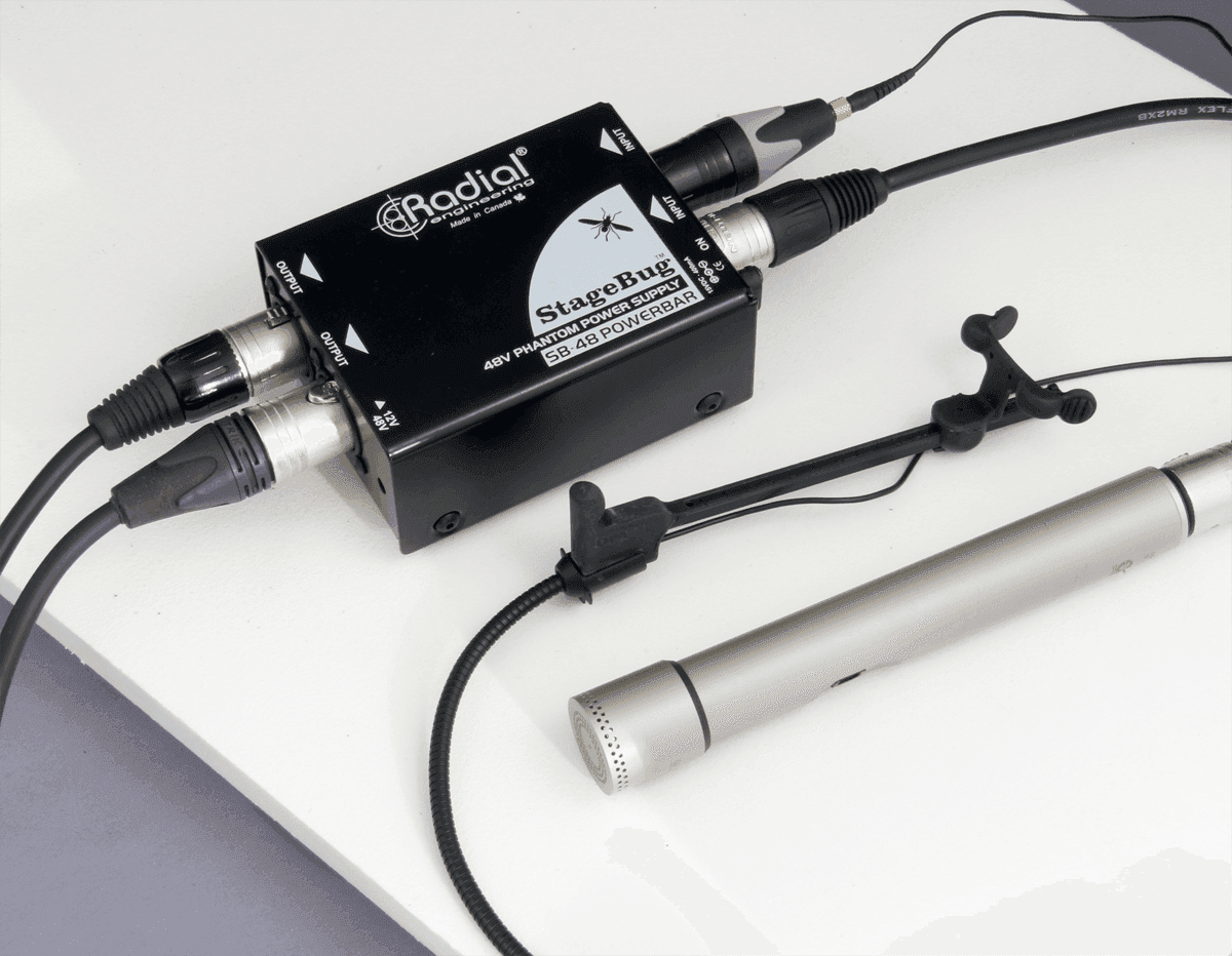 boîtiers de direct actifs et les microphones statiques. Il est alimenté