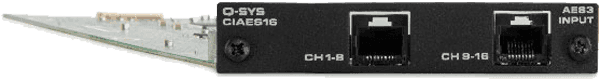 La carte CIAES16 est un périphérique 16-canaux d’entrées numérique AES / EBU (AES3) 24-bit qui peut être utilisé dans tous les Châssis CORE ou I/O Frame Q-SYS. Elle offre un moyen simple et rentable d'intégrer le système Q-SYS dans une installation existante ou nouvelle au travers de deux connecteurs RJ45 standard.