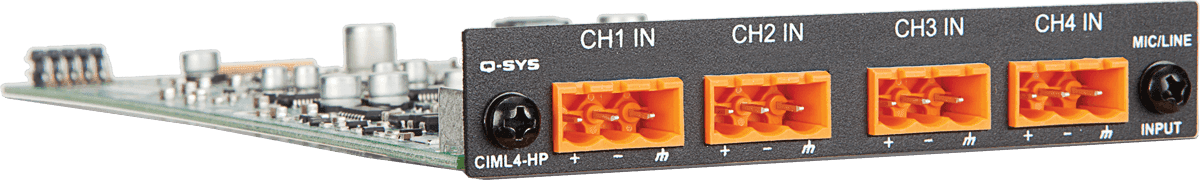 Quatre canaux d'entrées avec conversion A/D commutables microphone (avec alimentation fantôme 48 V ainsi qu’une préamplification de haute qualité) et/ou entrée audio analogique de niveau ligne. Cette carte fournit des entrées pour les microphones, les mélangeurs et les lecteurs de CD / DVD.