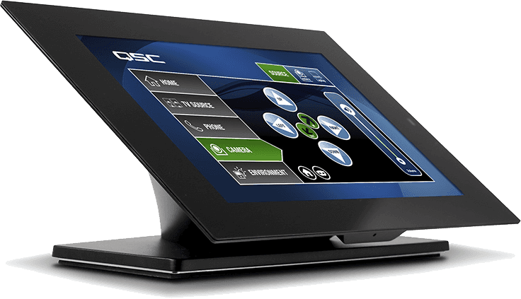 QSC offre une gamme d'écrans de contrôle tactiles pour les systèmes audio en réseau Q-SYS. La philosophie de QSC sur les périphériques de contrôle est simple : au lieu d’ajouter des boutons et autres commandes dédiées, QSC emploie des panneaux à écran tactile configurables connectés en réseau qui sont entièrement personnalisables avec des graphiques ainsi que des faders, des boutons, des compteurs, des indicateurs et d'autres contrôles virtuels pour atteindre le summum de la flexibilité.