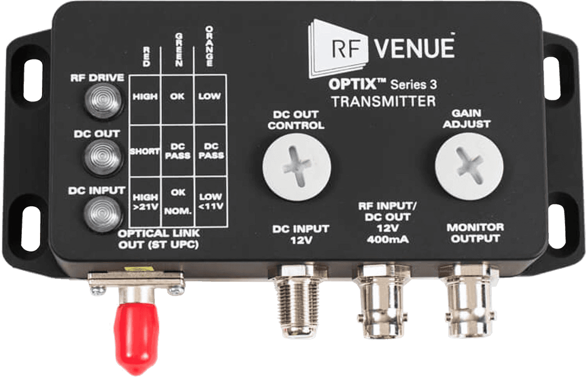 La série 3 du système de déport d’antenne sur fibre optique monomode OPTIX apporte de nombreuses améliorations et fonctionnalités par rapport à la version précédente. Recommandé pour la réception de micros HF dans de grands lieux, le système permet le déport des antennes sur plus de mille mètres. Le module TX permet d’alimenter des antennes actives, possède une sortie pour le monitoring RF, un gain ajustable et des LED d’état. Le module RX possède un gain ajustable, des LED d’état et deux sorties RF avec contrôles de niveau pour distribuer le signal sur deux récepteurs sans accessoire supplémentaire.