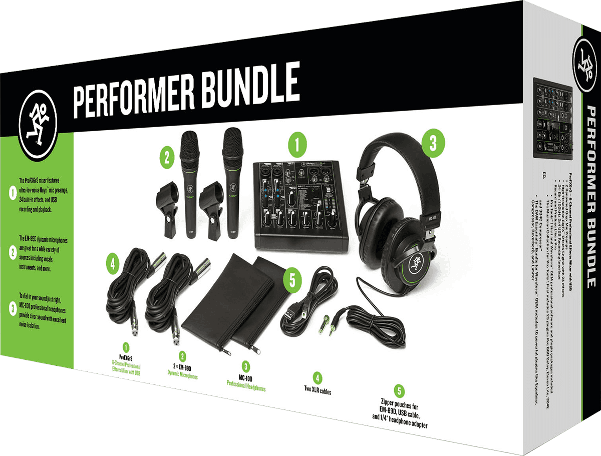 Fort de son savoir faire dans tous les domaines de l'audio Mackie propose des packs avantageux qui permettent de bien démarrer une configuration audio. Que vous soyez musicien, podcasteur, amateur de karaoké et bien plus encore, il y a forcément un pack fat pour vous.