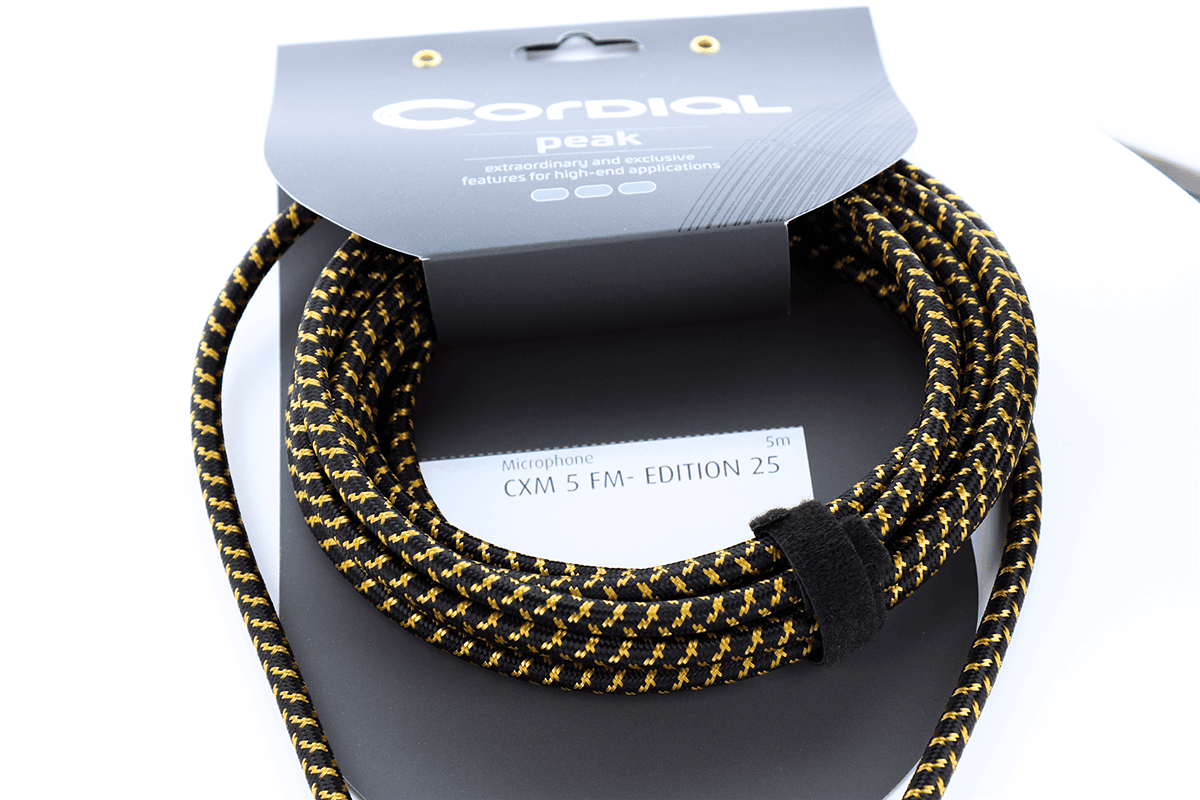 CXM FM-EDITION 25 - Fiches NEUTRIK XLR f/m contacts plaqué or - gaine textile noir/doré - 5 mPrésentation
