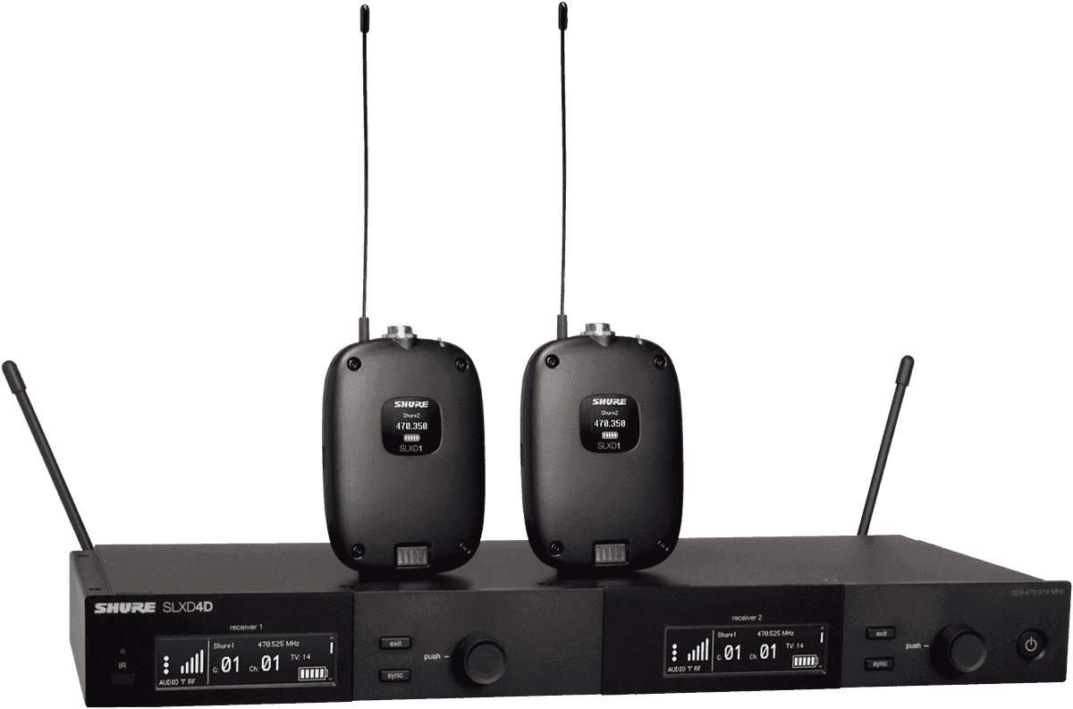 récepteur double SLXD4DE, de deux émetteurs de poche SLXD1. Pour un