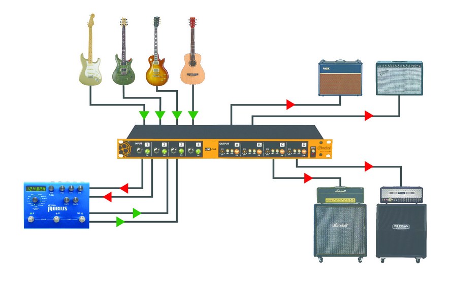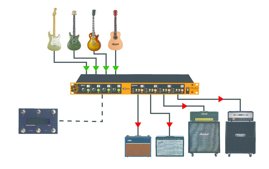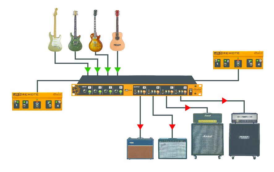 Le JX44-V2 de radial est l'outil ultime pour le guitariste sur scène. Il