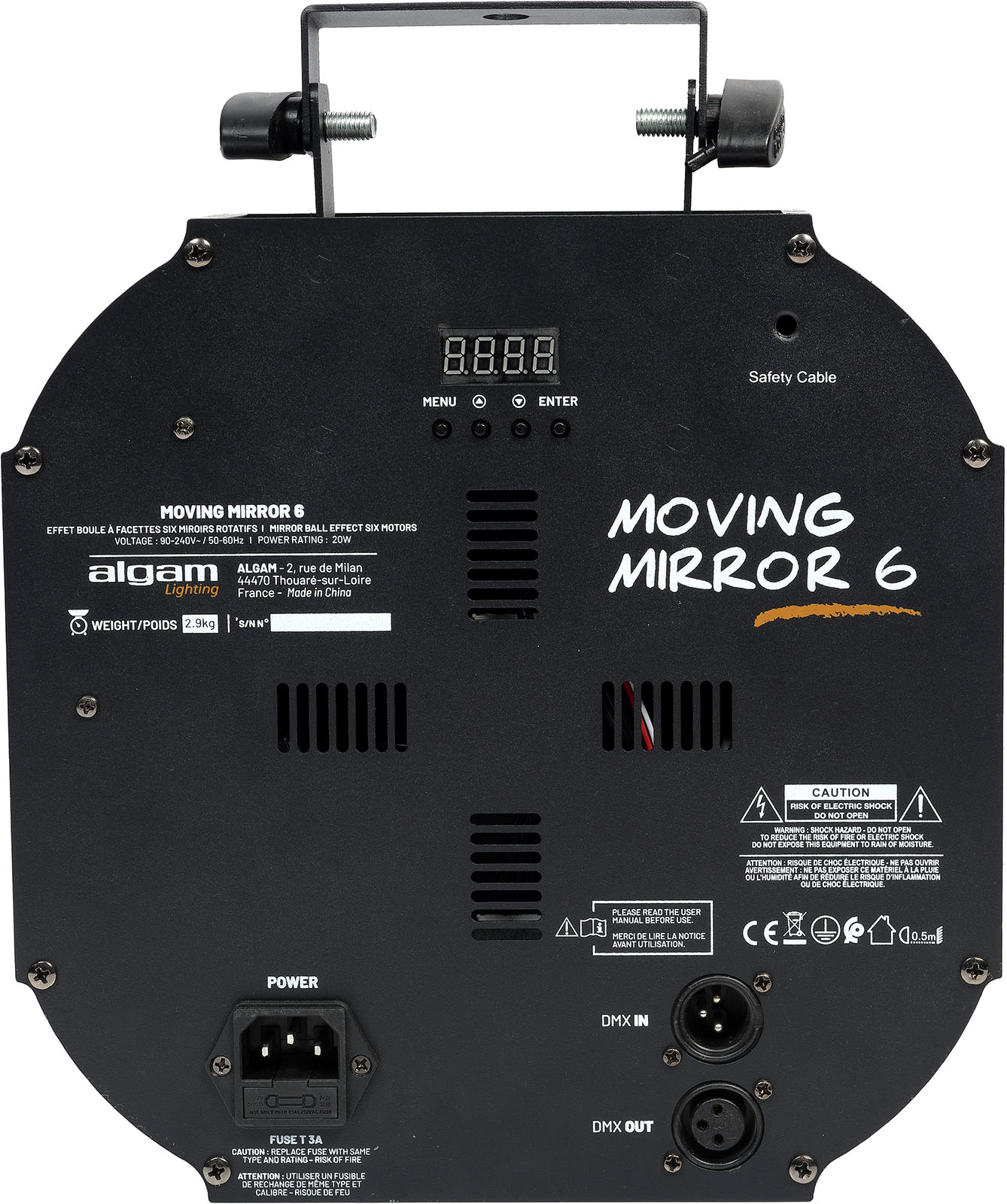 Le Moving Mirror 6 a été pensé pour être prêt à fonctionner en quelques instants grâce à son interface très simple à prendre en main. Choisissez entre l'un des deux modes automatiques ou activez le mode de détection musical, pointez une lyre sur les miroirs, et le tour est joué ! Pour les utilisateurs plus avertis, le Moving Mirror peut également être piloté précisément via les 9 canaux DMX disponibles, autorisant un contrôle indépendant de la vitesse et du sens de rotation des 6 disques.