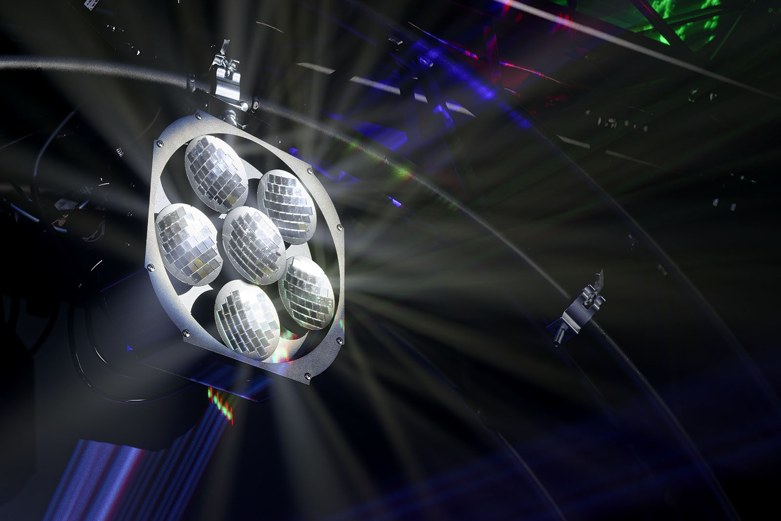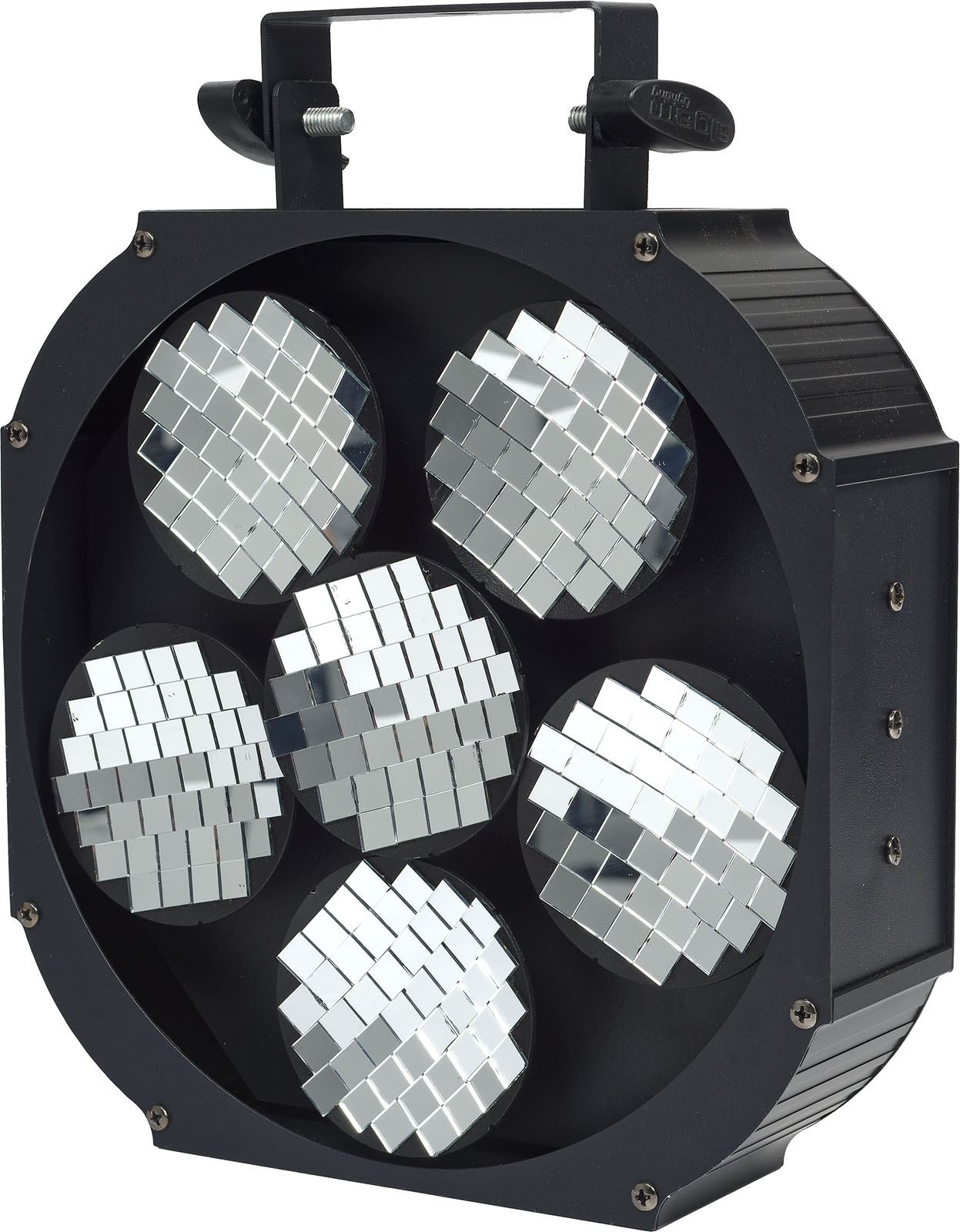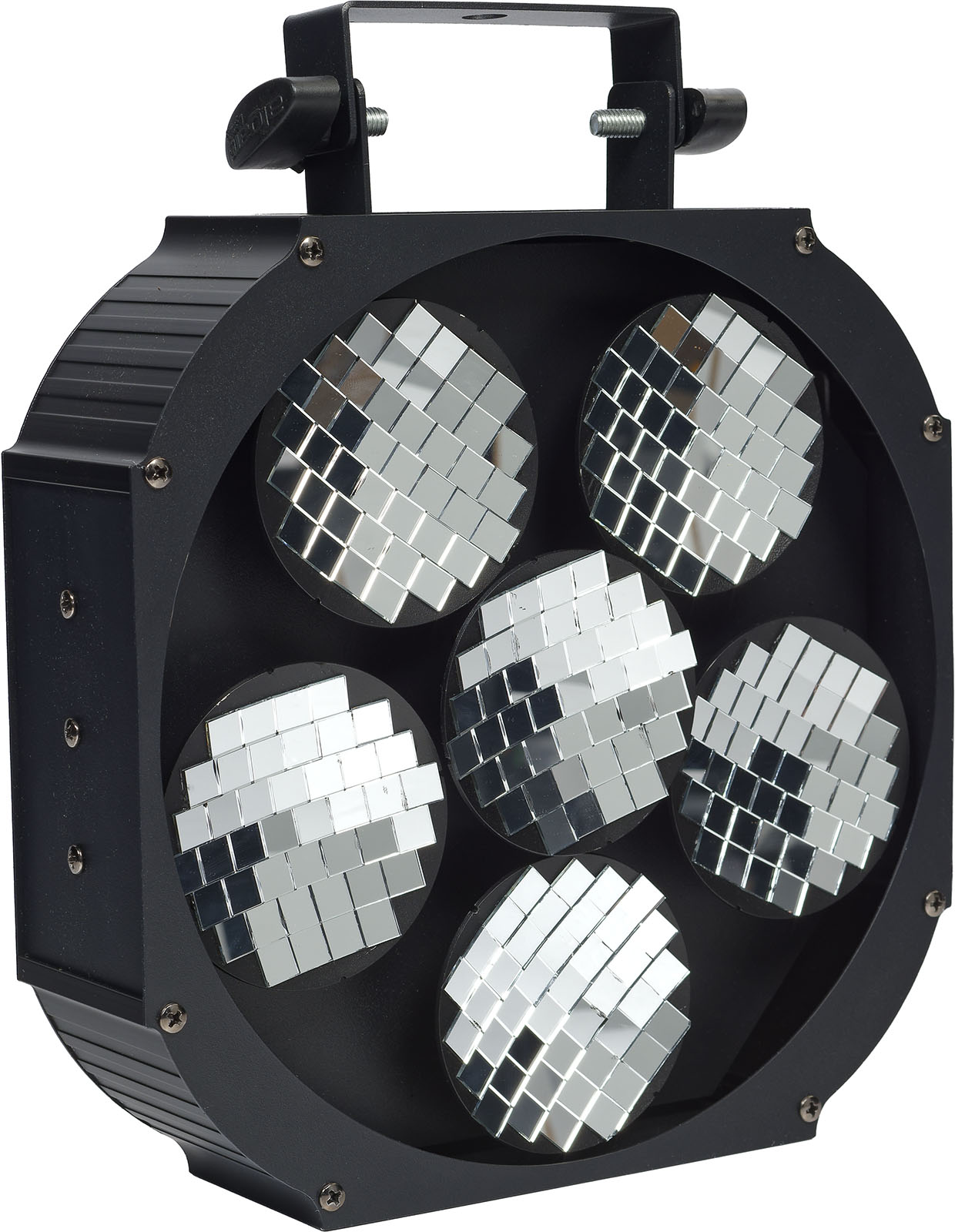 Véritable incontournable de toute soirée disco' et de tout nightclub digne de ce nom, la boule à facette est certainement l'effet le plus emblématique des années 80 ! Avec le Moving Mirror 6, Algam Lighting propose une version revisitée et modernisée de ce célèbre effet. Composée de 6 disques rotatifs motorisés et incurvés recouverts d'une mosaïque de miroirs, capable de fonctionner à des vitesses différentes et dans des sens opposés, le Moving Mirror 6 est capable de générer un impressionnant effet de boule à facettes, avec des motifs en mouvement s'entrecroisant dans l'espace. Braquez simplement une faisceau lumineux suffisamment puissant et concentré provenant d'une lyre Beam ou Spot sur les miroirs, et c'est parti pour la soirée disco !