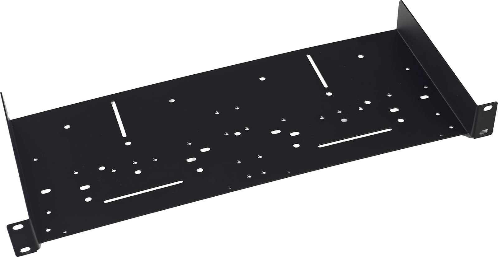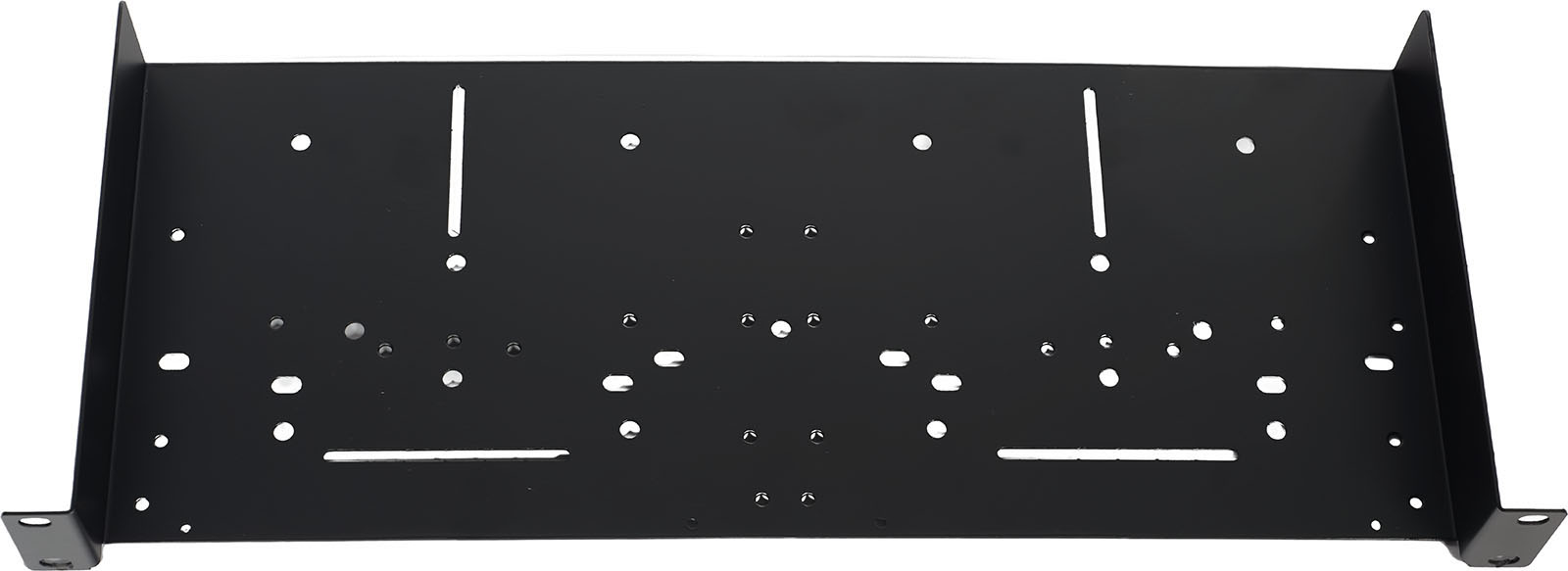 - Nombreux trous pour fixer une vaste sélection d'appareils non rackables, tels que des récepteurs HF, des disques durs, des interfaces audio et bien d'autres.