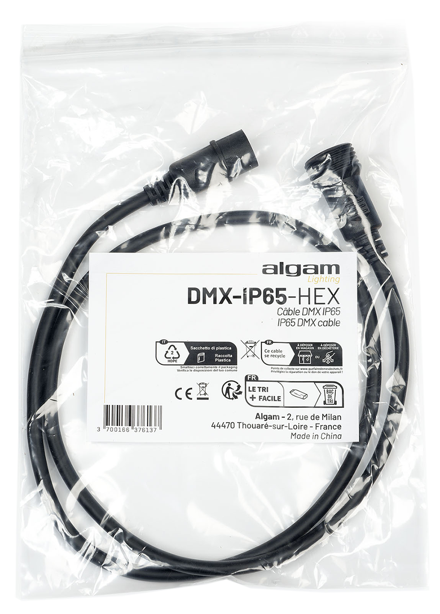 Ce câble DMX IP65 spécifique aux IP-PAR-712HEX et IP-PAR-1212HEX d'Algam Lighting représente la solution parfaite pour interconnecter deux IP-PAR ou rallonger une liaison DMX IP.
