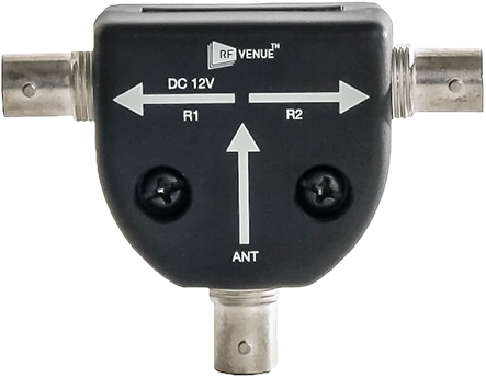 Caractéristiques : Une entrée d'antenne BNC et deux sorties BNC, ou deux entrées d'antennes BNC et une sortie BNC. Le canal R1 transmet 12V DC si le coaxial est alimenté en DC.