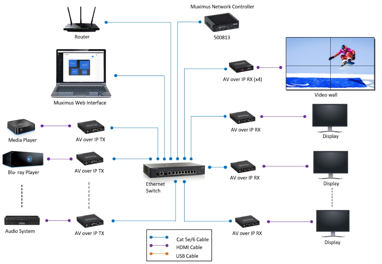 Une fois installé sur un réseau local (LAN), le contrôleur réseau Muximus analyse le LAN à la recherche des produits AV sur IP MuxLab connectés, ce qui permet à l'utilisateur de détecter, configurer et contrôler automatiquement la connectivité de ces produits via une interface Web Ethernet.