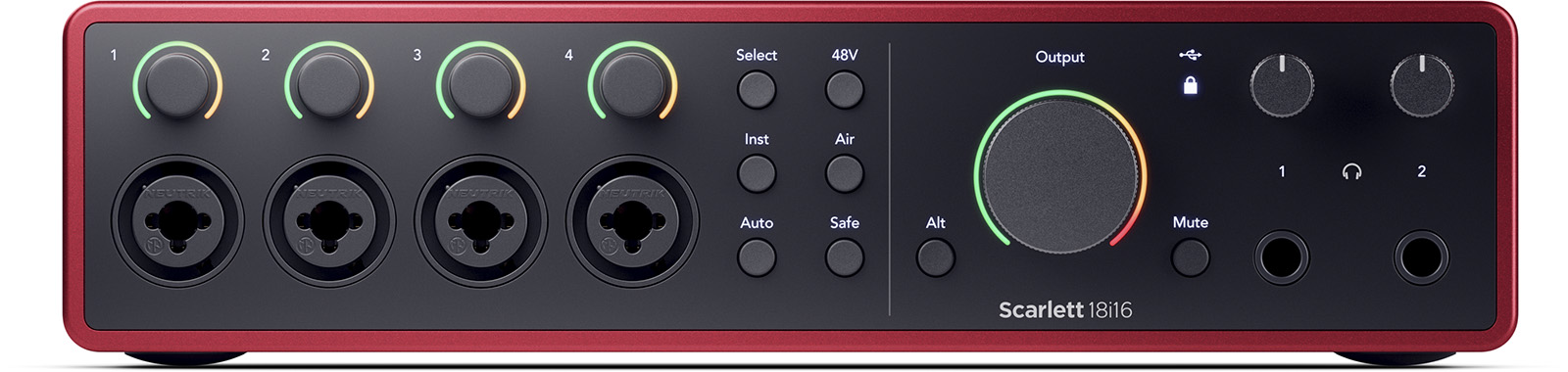 La Scarlett 18i16 est idéale pour les enregistrements multipistes. Elle reprend les convertisseurs de la gamme professionnelle RedNet et les 69 dB de gain de ses quatre préamplis micros de 4e génération permettent de capturer les interprétations les plus dynamiques. Ses modes Auto Gain et Clip Safe se chargent des niveaux pour que vous puissiez vous concentrer sur vos prises. La Scarlett 18i16 s’intègre aussi parfaitement à votre STAN et votre matériel grâce à ses multiples entrées/sorties analogiques et numériques. Vous pourrez brancher vos instruments et effets et gérer facilement les routages complexes avec le logiciel Focusrite Control 2.