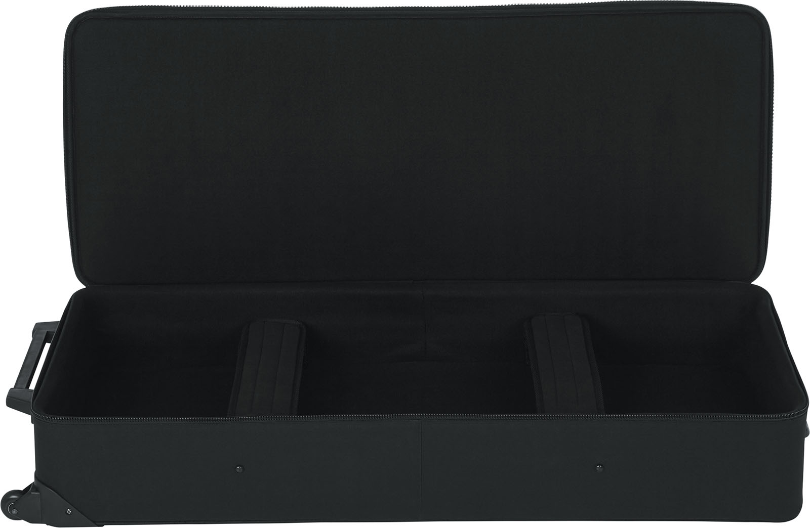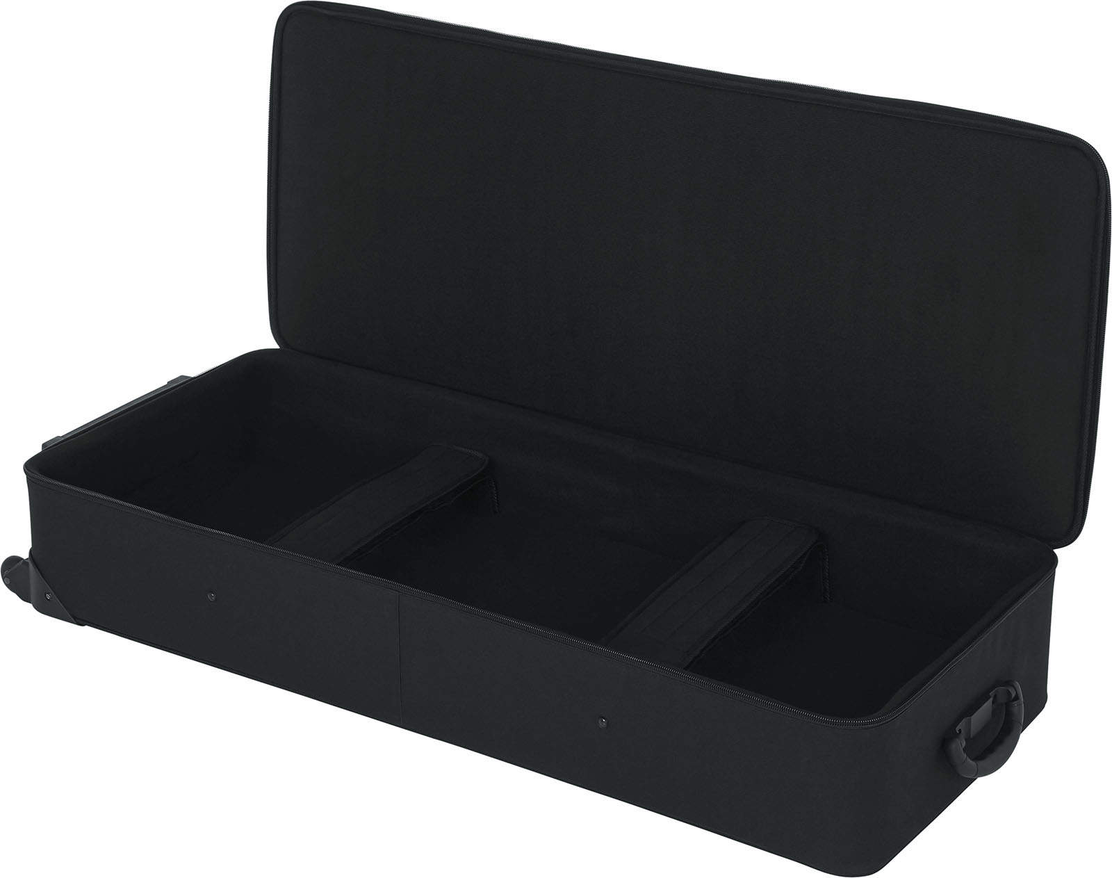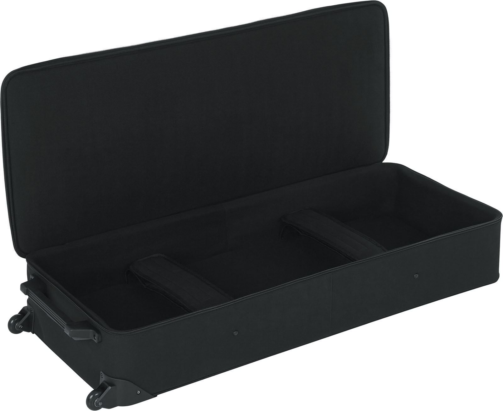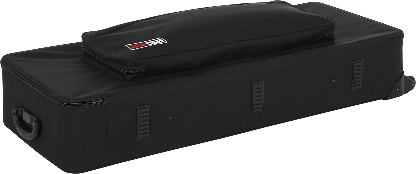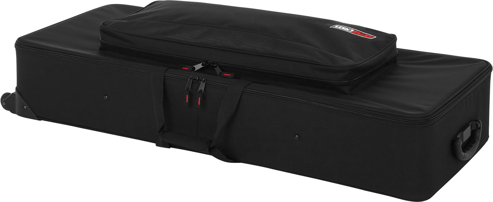 L'étui Gator GK dispose par ailleurs d'un large compartiment, avec fermeture à glissière, qui vous permettra de ranger tous vos accessoires, de la pédale de sustain aux partitions de musique. Les poignées en nylon facilitent le transport de votre instrument partout où vous allez mais...nul besoin de se casser le dos, cet étui est pourvu de roulettes !
