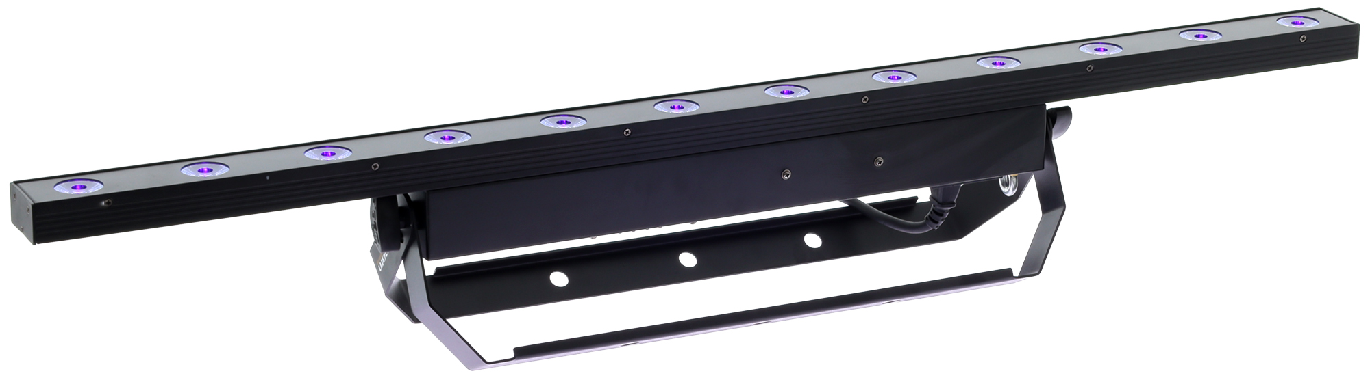 La Barwash 36 UV d’Algam Lighting est une barre LED professionnelle de 1 mètre, dédiée exclusivement à l’éclairage ultraviolet. Équipée de 12 LED UV de 3 W (36 W au total) et d’un angle de faisceau de 40°, elle délivre un lavage uniforme idéal pour révéler peintures, textiles et maquillages fluorescents. Légère (2,8 kg), robuste et compacte (1000 × 51 × 157 mm), elle s’intègre facilement dans toutes les configurations scéniques ou événementielles. Son contrôle simplifié via DMX-512 (1 canal) ou en mode manuel assure une mise en œuvre rapide et une compatibilité avec la majorité des installations.