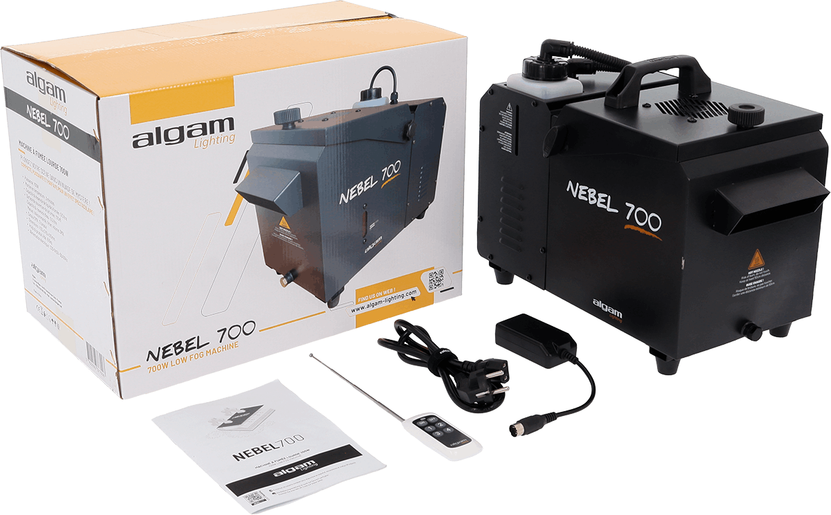 Avec ses dimensions contenues (440 × 310 × 240 mm) et ses 6,5 kg, la Nebel 700 est facile à transporter et à positionner sur scène ou en fond de décor. Son réservoir de 0,5 L permet une utilisation confortable pour les prestations de courte ou moyenne durée. Robuste et fiable, elle s'intègre aisément dans tout type de prestation nécessitant un effet de fumée au sol sans logistique contraignante.