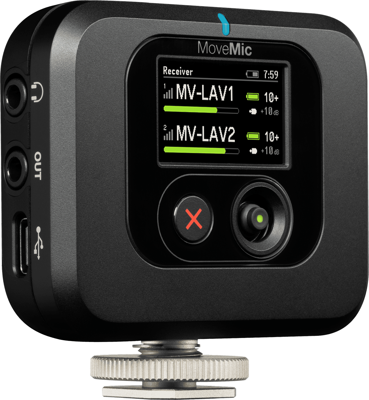 - Connectez-vous à des caméras, des ordinateurs ou des applications mobiles tierces à l'aide du récepteur MoveMic inclus.