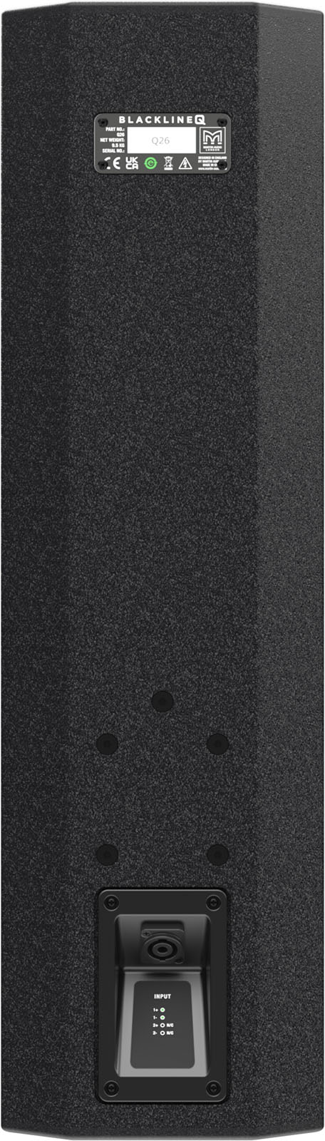 Le Q26 est équipé d'un double haut-parleur LF de 6 pouces (150 mm) avec une bobine mobile de 1,5 pouce (38 mm) et d'un haut-parleur HF à compression de 1 pouce (25 mm) avec un dôme de 1 pouce (25 mm). Un pavillon à dispersion différentielle assure une couverture large et homogène.