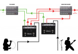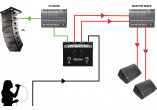 -Sans footswitch activé, le switcher envoie le signal par défaut en sortie A, afin d'envoyer le signal au système de sonorisation façade (Front of House).