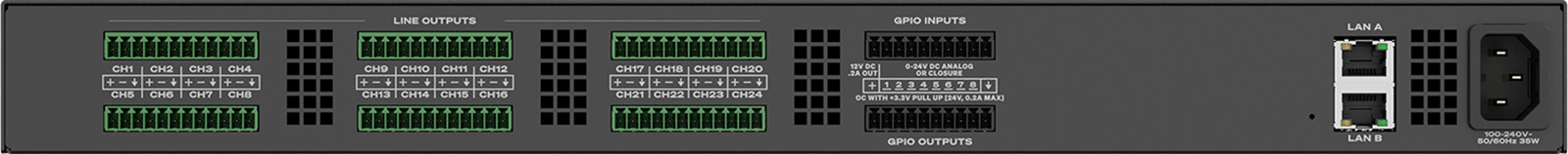 Extensions d'E/S audio natives pour Q-SYS 24 sorties de niveau ligne.
