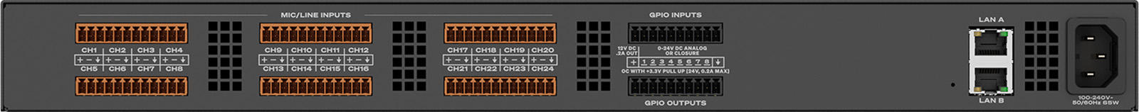 Extensions d'E/S audio natives pour Q-SYS 24 entrées de niveau micro/ligne.