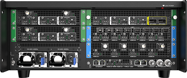 - 8 × HDMI 2.0 ou 8 × sorties fibre 10G OPT (mode Copy)