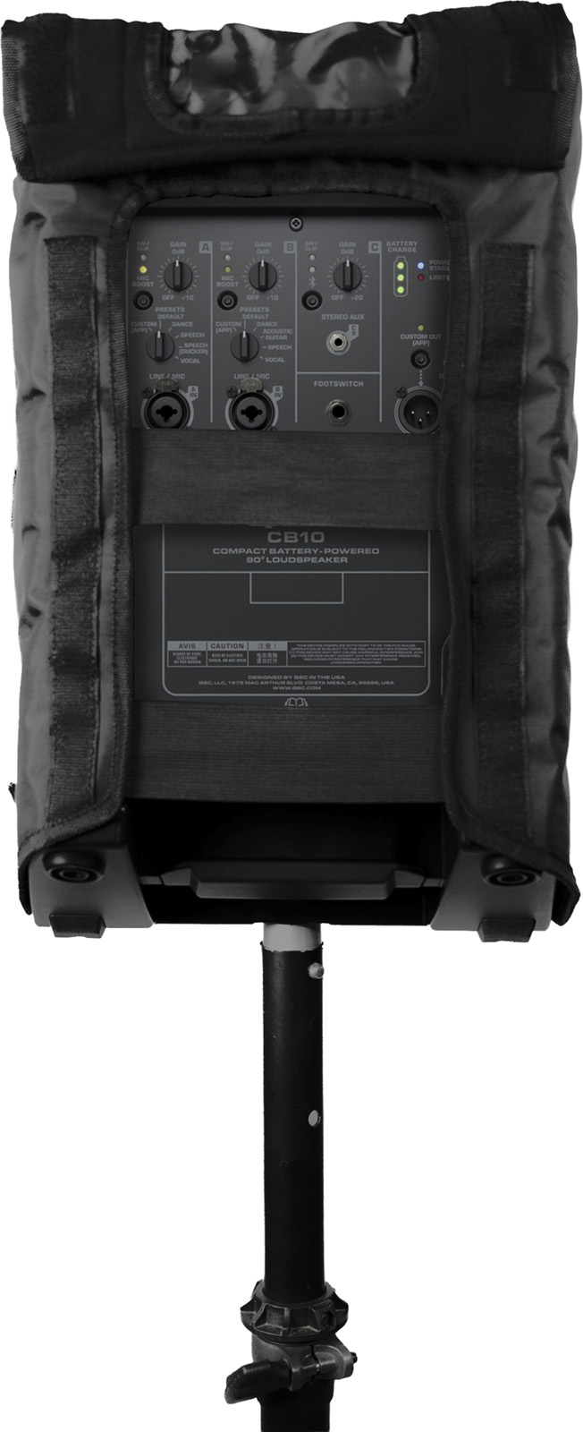 Housse en tissu nylon et maille hydrophobe pour le transport et l'utilisation extérieure temporaire de l'enceinte CB10 par mauvais temps.