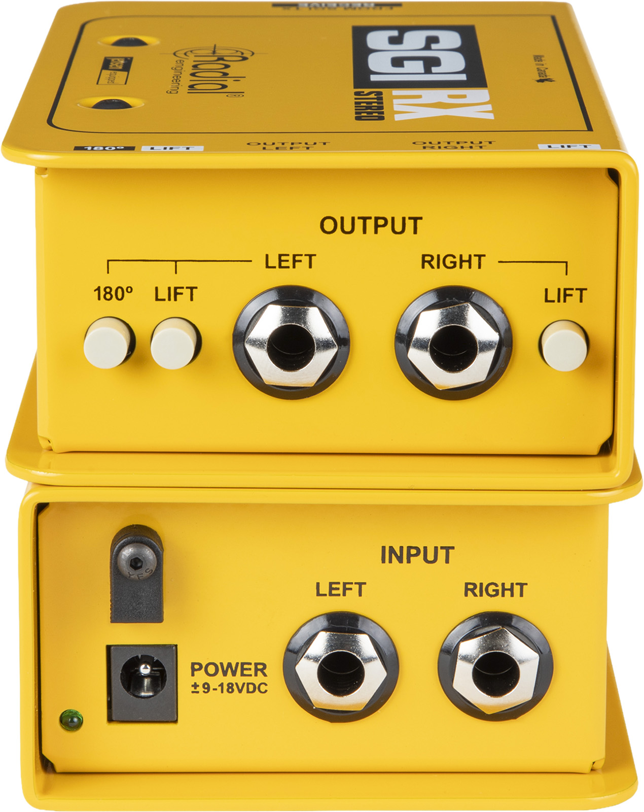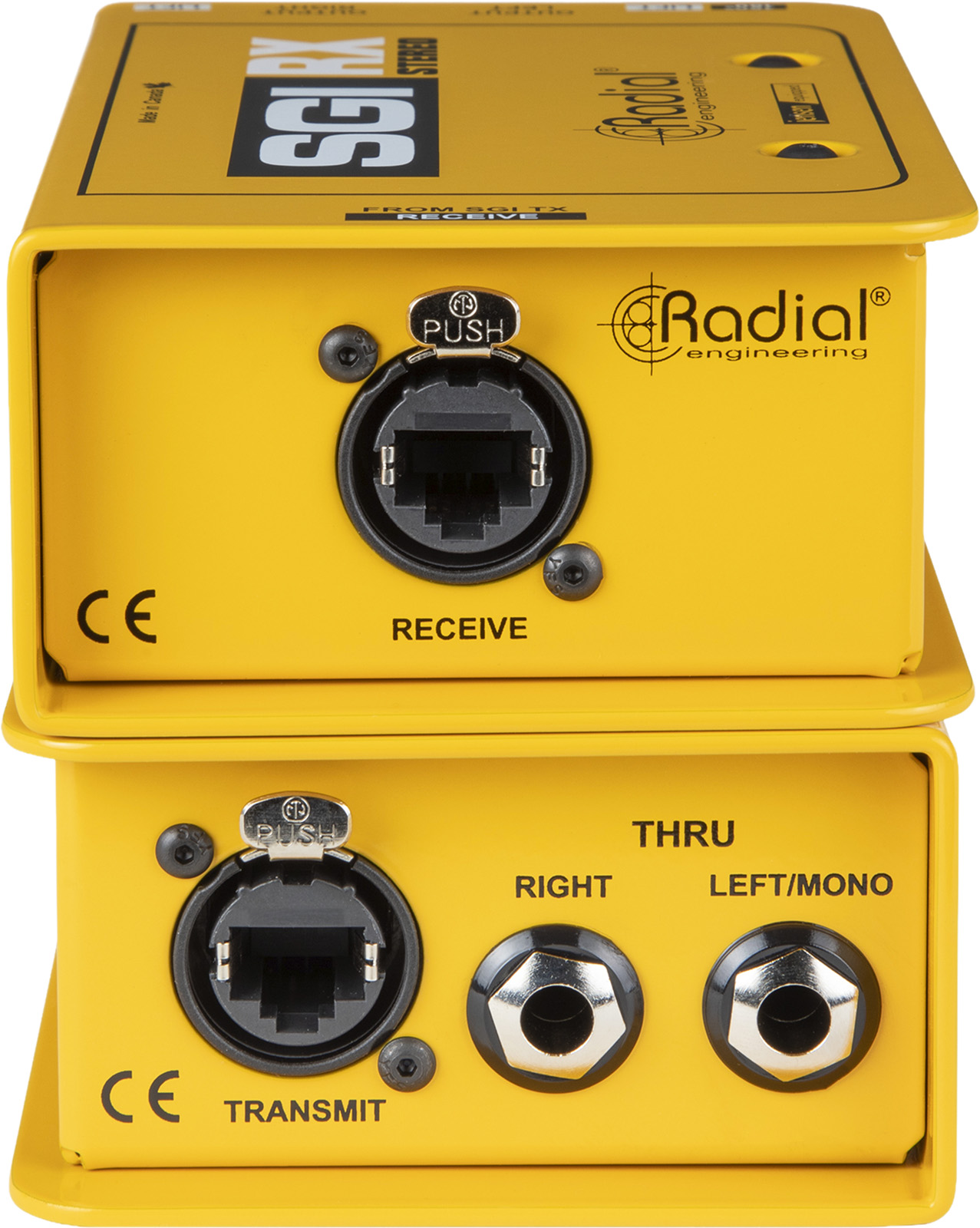 Équipé de connecteurs RJ45 verrouillables etherCON sur les unités TX et RX (compatibles avec les connecteurs verrouillables Neutrik etherCON), la SGI Stereo est idéale pour les guitaristes utilisant des configurations d’effets stéréo. Il facilite la connexion du pedalboard vers deux amplificateurs distants, que ce soit sur de grandes scènes ou dans des cabines d’amplis en studio. Le système peut également s’intégrer facilement à une infrastructure Ethernet existante.