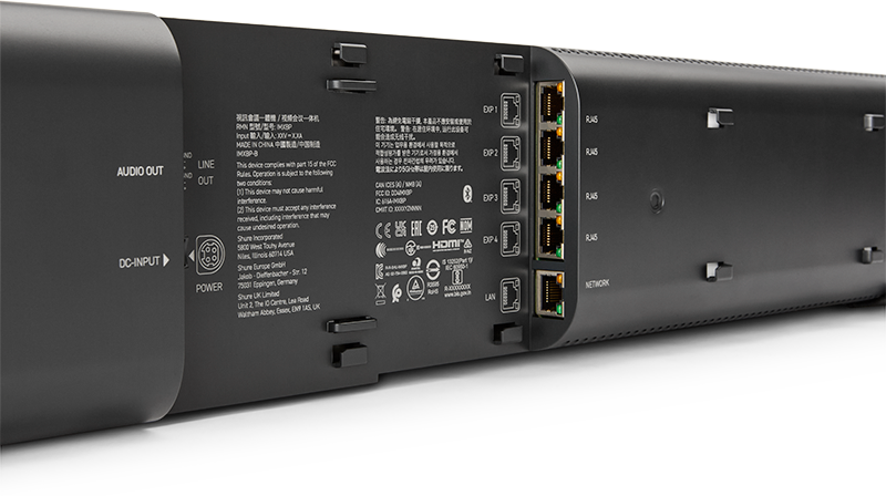 - L'IntelliMix Bar Pro combine des microphones Shure brevetés et des haut-parleurs stéréo haut de gamme à haut rendement en un seul et même appareil.