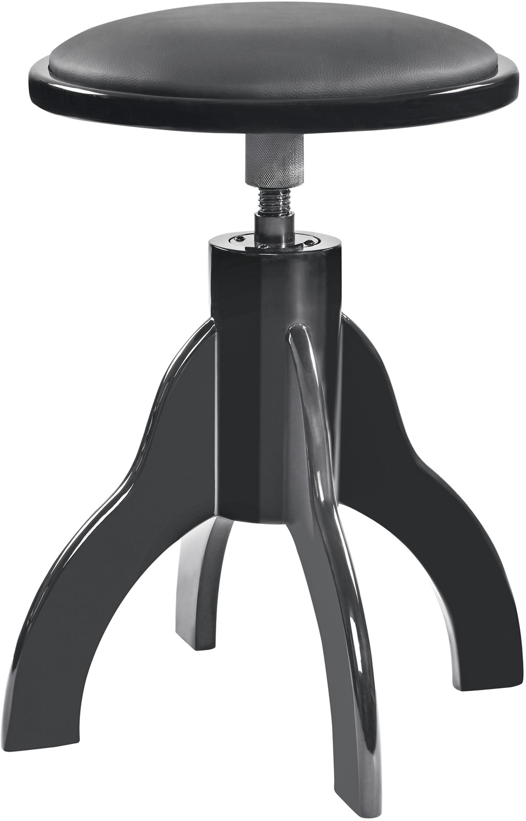 Ce tabouret pratique et haut de gamme en bois massif est idéal pour jouer des instruments à clavier. Sa finition polyester noir et son revêtement en similicuir noir offrent un look harmonieux. Grâce au mécanisme à vis rotative facile à utiliser, la hauteur se règle en continu de 485 à 625 mm.