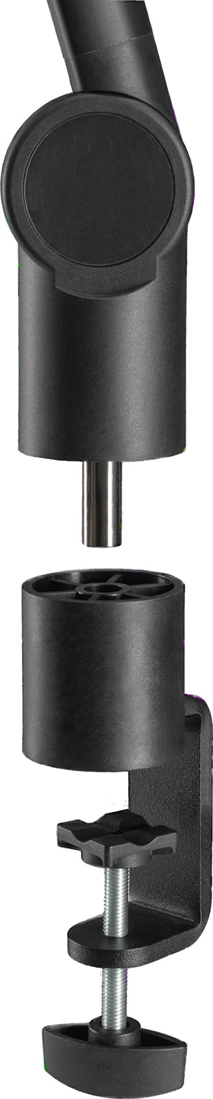 Ce bras de microphone élégant et fin dispose d’un filetage 3/8" ou 5/8" et d’une pince de table innovante pour un positionnement rapide et flexible en studio ou dans un environnement multimédia. La gestion de câble intégrée permet de dissimuler les câbles dans un canal dédié pour un gain de place et un rendu discret. Il supporte facilement des microphones jusqu’à 1 kg dans n’importe quelle position. La pince, compatible avec des épaisseurs de 3 à 50 mm, offre de nombreuses options de fixation. Une bride de table est également fournie pour une installation fixe.