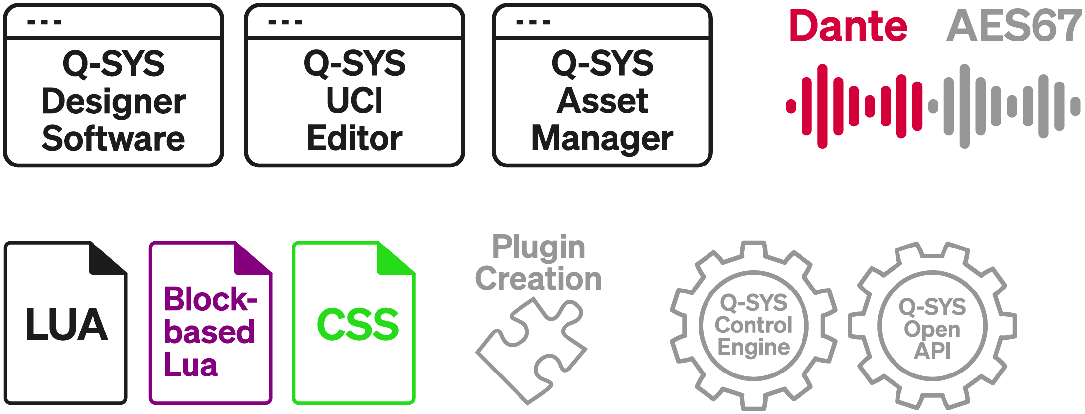 Q-SYS Open est une collection d’outils de développement publiés et basés sur des normes ouvertes pour permettre le développement par des tiers dans Q-SYS.