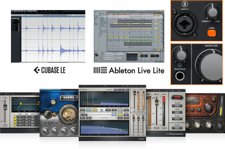 • Inclus Ableton Live Lite, Cubase Le et pack de plugins Waves (Audio Track, Eddy Kramer, TrueVerb) pour une finition professionnelle de vos productions