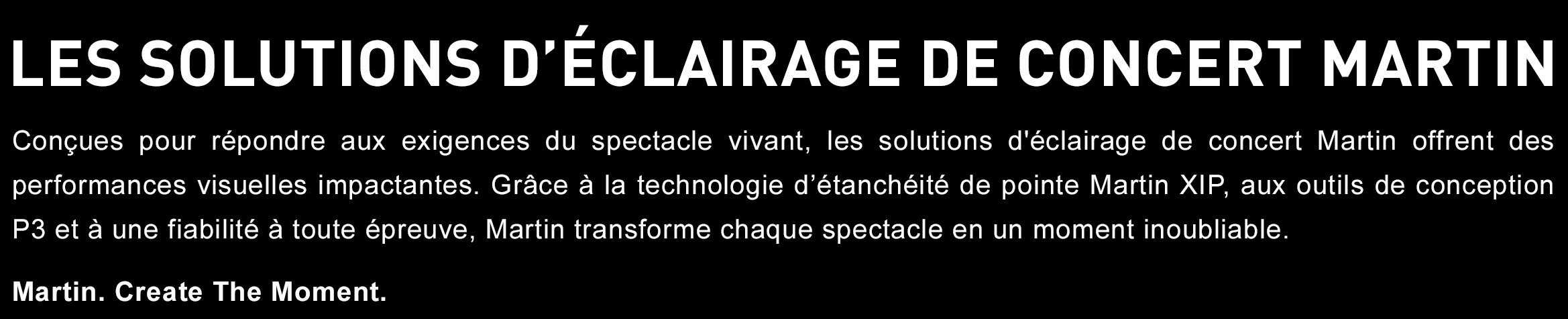 Conçues pour répondre aux exigences du spectacle vivant, les solutions d'éclairage de concert Martin offrent des performances visuelles impactantes.