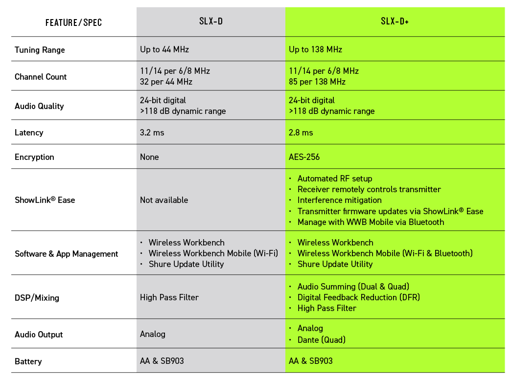 Shure a également fait évoluer le traitement numérique interne des récepteurs SLX-D+.