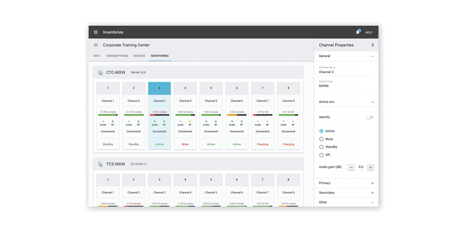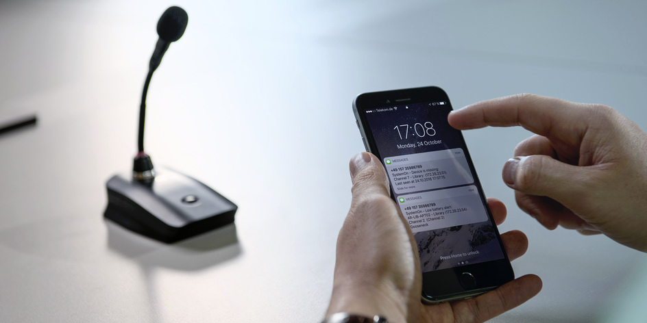 SystemOn permet la surveillance en temps réel depuis un ordinateur portable, un smartphone ou une tablette, de l'autonomie des batteries, des niveaux audio et RF ou de détecter un appareil manquant sur le réseau.